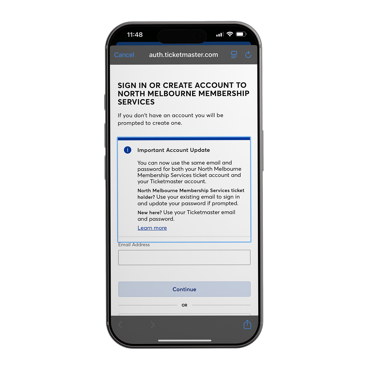 Log in to your North Melbourne account using your email address and password. If you are unsure of your password, select 'Forgot Password' and follow the prompts.