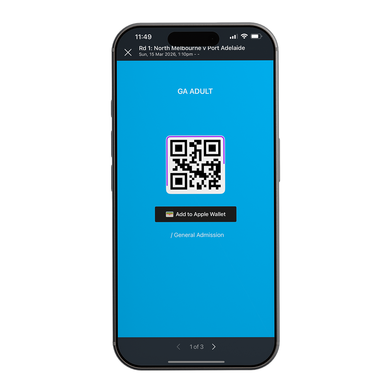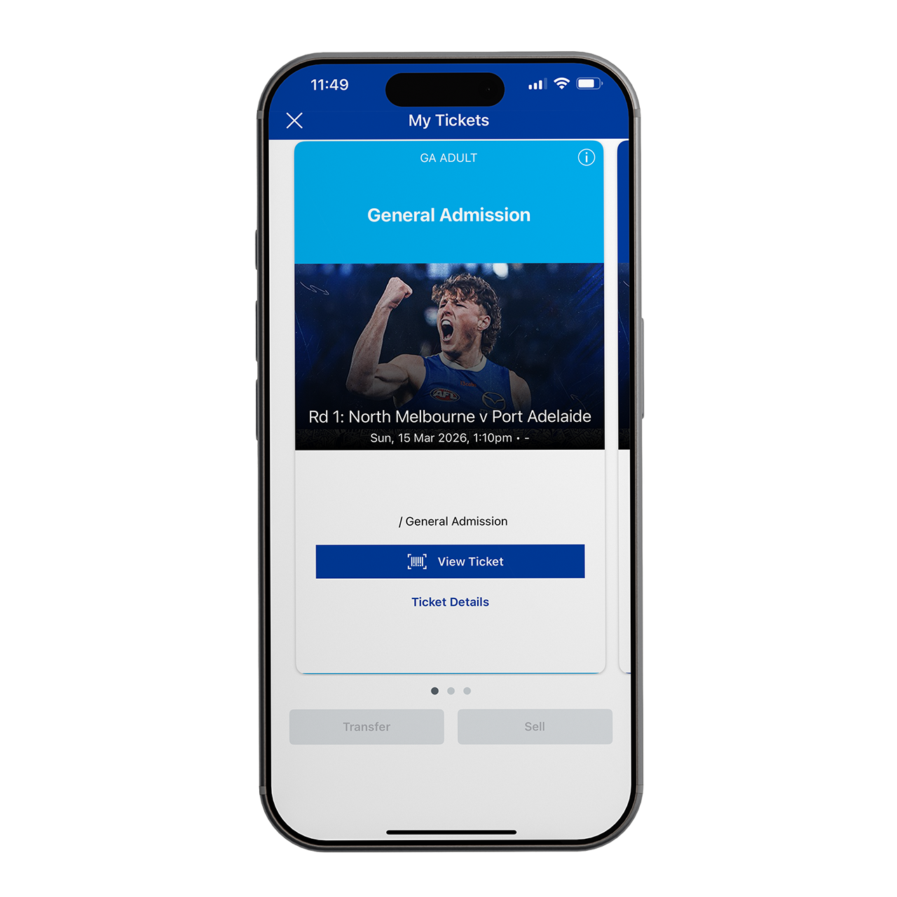 Select the game you wish to attend. Please note, 2026 membership tickets are not yet visible in the app & will be available closer to the start of the season.